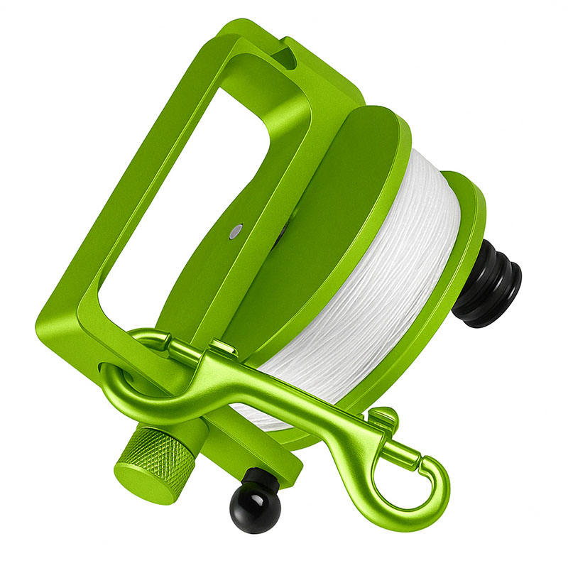 Carrete DE BUCEO DE ALUMINIO personalizado con mango de resorte y cierre de perno de doble extremo para buceo en cuevas y naufragios