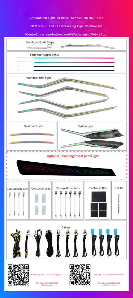 Iluminación Ambiental Personalizada de Fácil Instalación, 28 LED, Luz Láser de Arcoíris, IP67 Impermeable, 12V, Plug-and-Play, Certificación RoHS