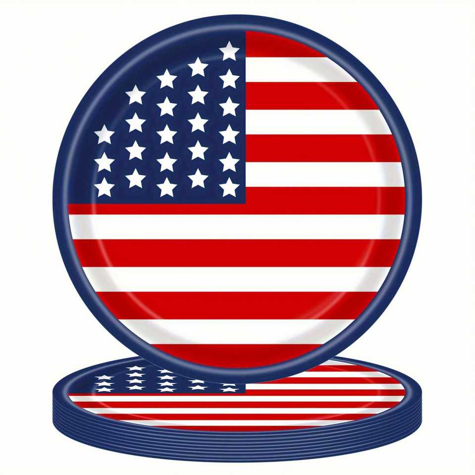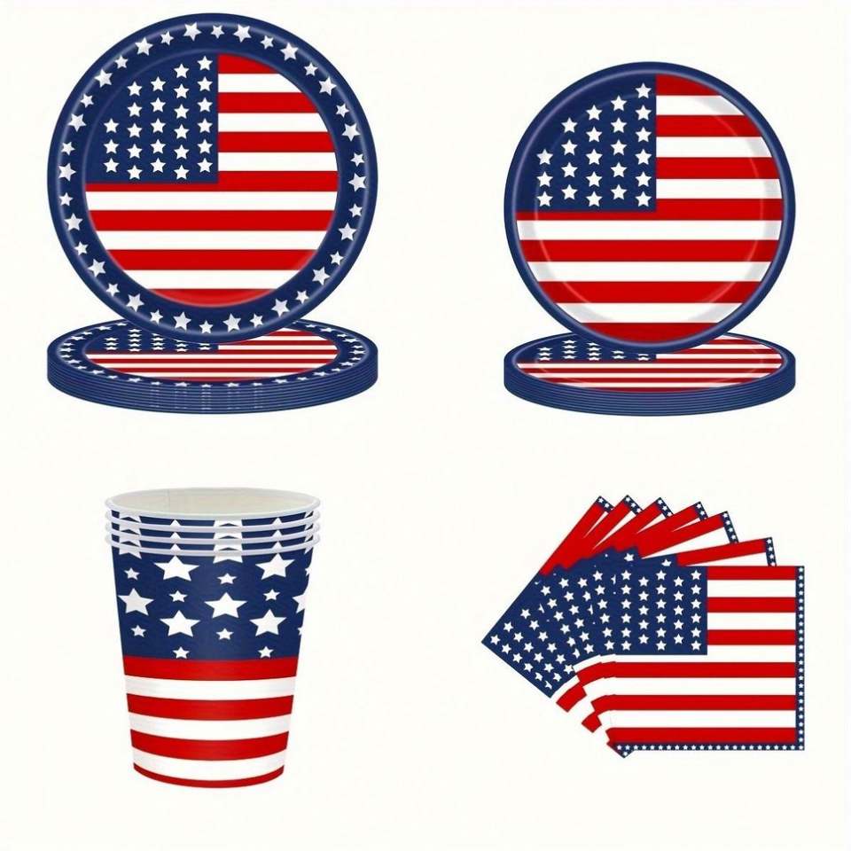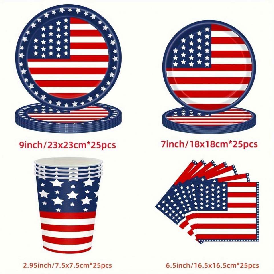 Juego de Vajilla Personalizado con la Bandera Americana para 25 Personas - Platos, Servilletas y Tenedores Patrióticos para el 4 de Julio
