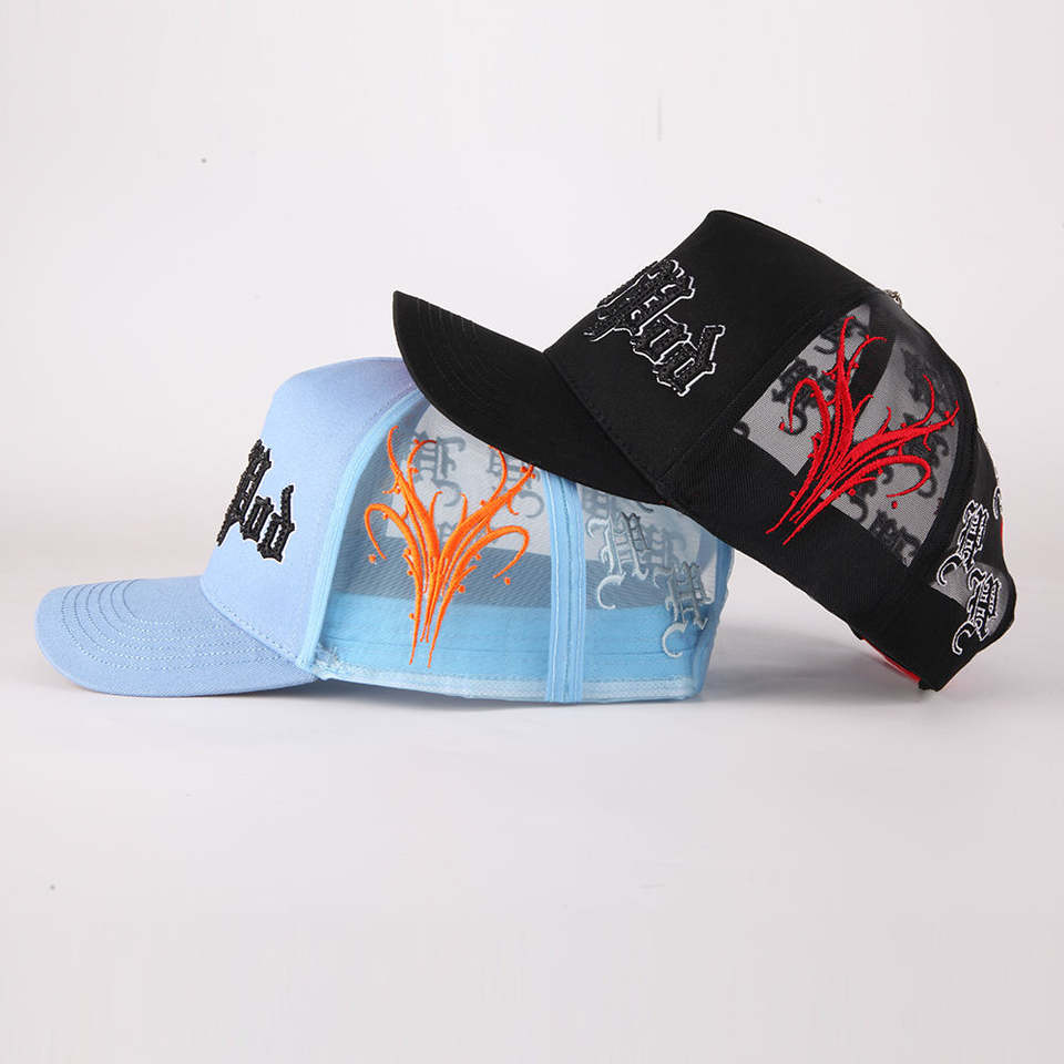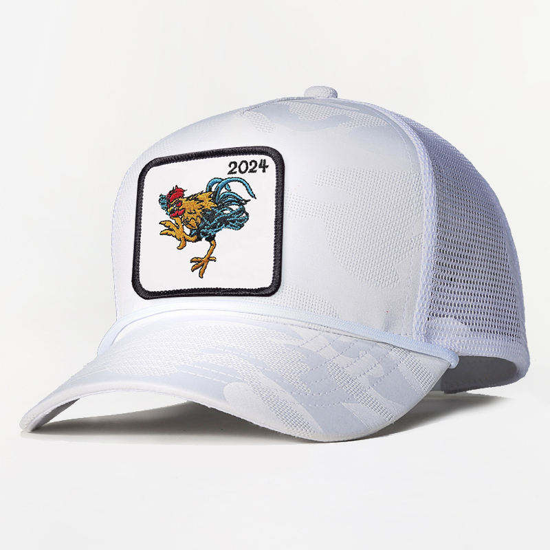 Gorras de camionero con parche bordado de animales personalizados, de 5 paneles Gorras, sombreros deportivos de malla, tela Softshell, juego elevado para playa al aire libre