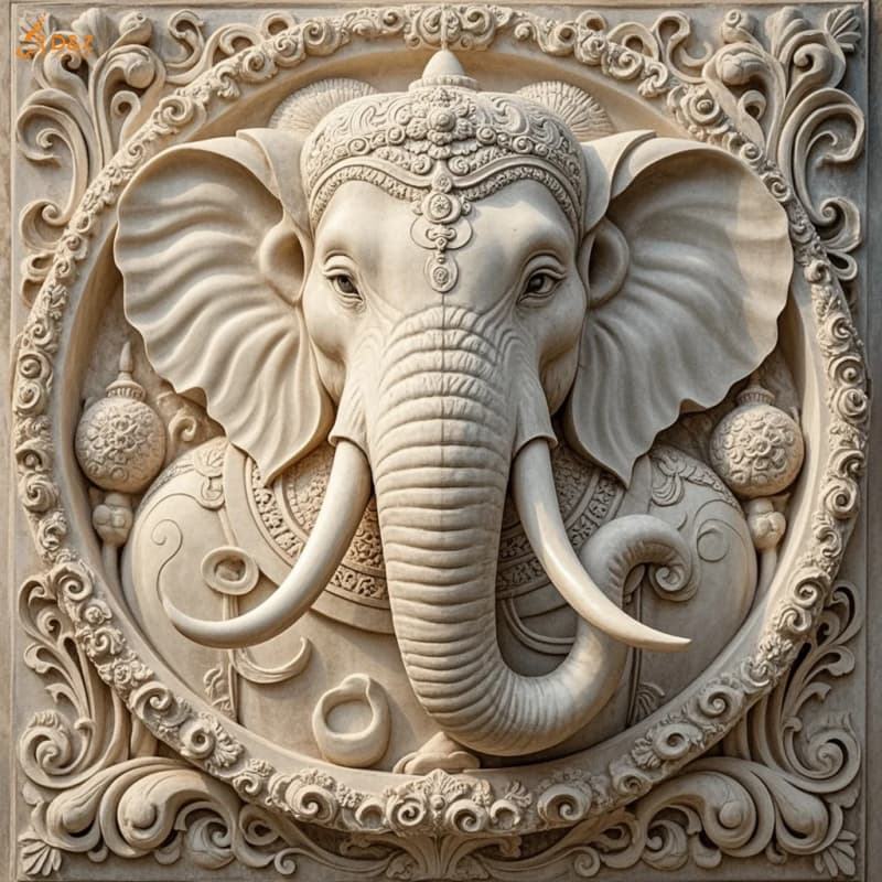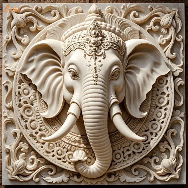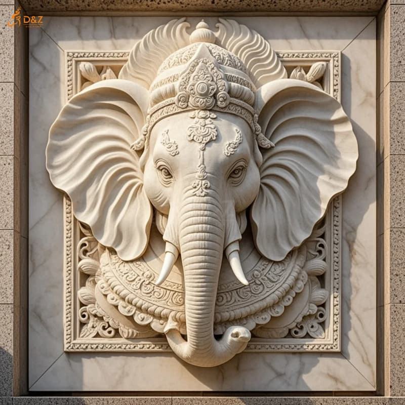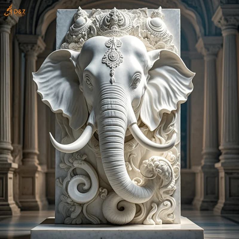 Tipo:Escultura de pared de cabeza de elefante de mármol blanco