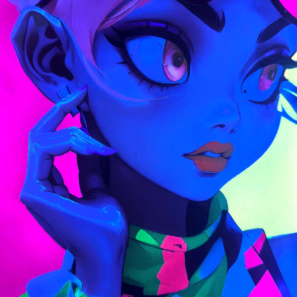 Impresión de Arte de Tinta de Neón de Anime Personalizada, Póster de Papel Fluorescente, Impresiones de Manga, Ilustración Digital, Decoración de Pared para el Hogar del Artista