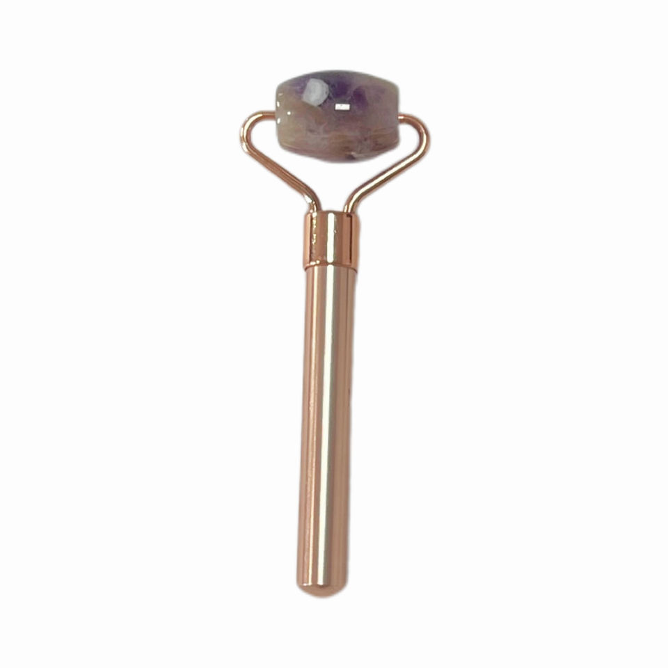 Juego personalizado de mini rodillos faciales y oculares antienvejecimiento Gua Sha amatista pequeño rodillo masajeador de aleación de Zinc rodillo facial Guasha