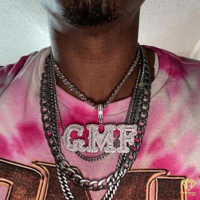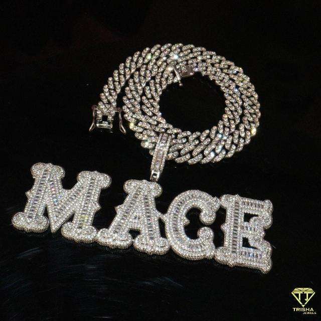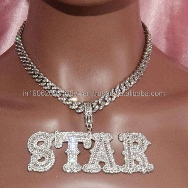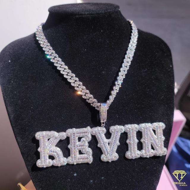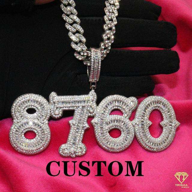 Colgante de número de letra Baguettes grande personalizado en plata de ley 925, con diamantes de moissanita VVS