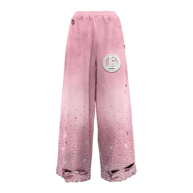 Parches bordados con apliques personalizados, pantalones acampanados desgastados, remache, diamantes de imitación, lavado ácido, 100% algodón, pantalones de chándal Acampanados para correr