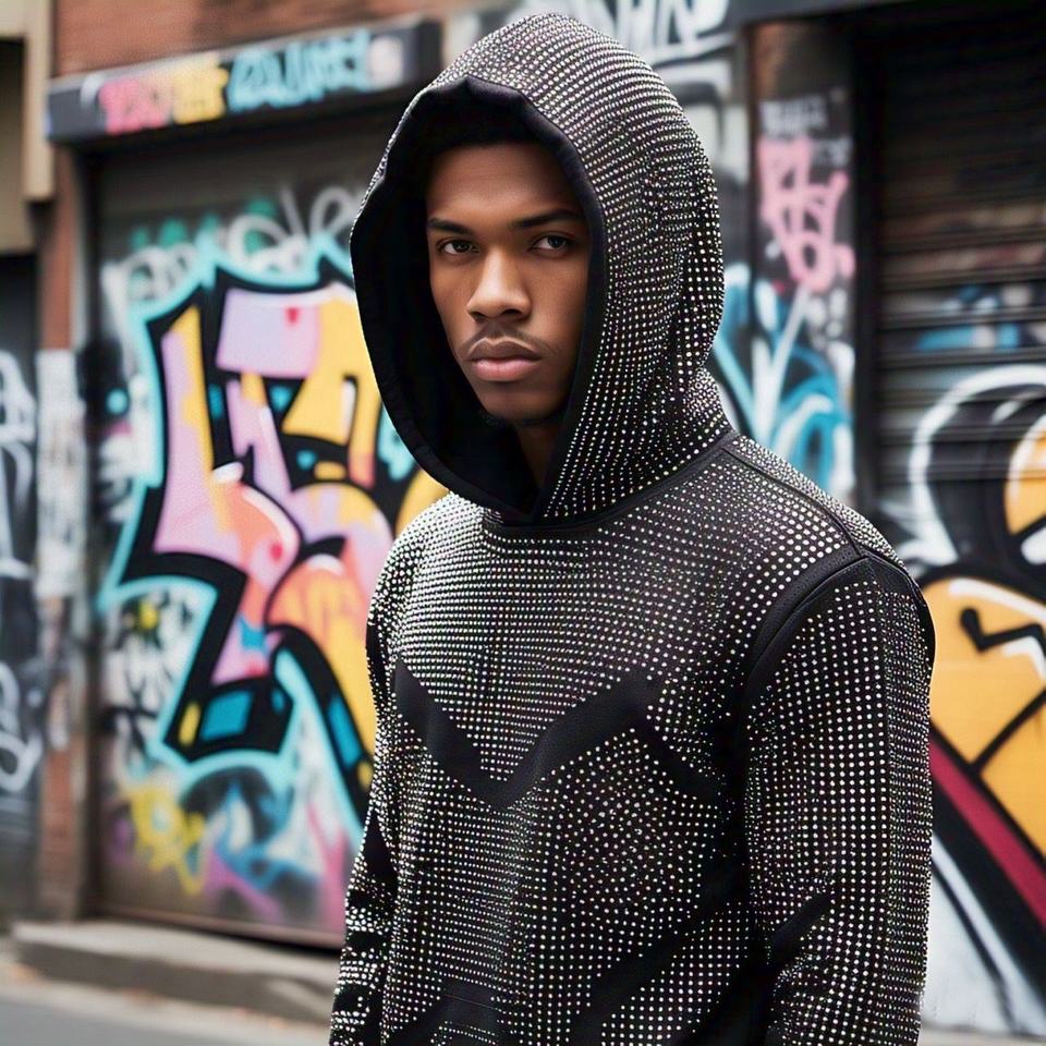 Sudaderas con capucha desgastadas bordadas con apliques personalizados para hombre, sudaderas con capucha lavadas con ácido de diamantes de imitación para hombre, ropa de calle polar para hombre
