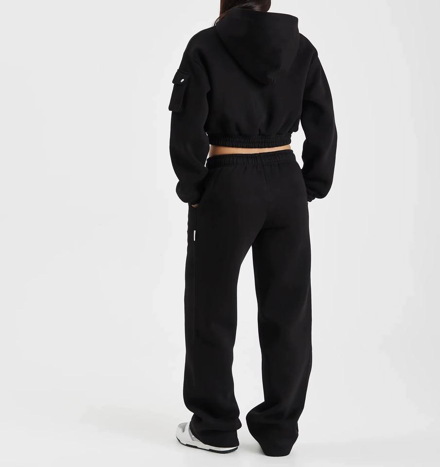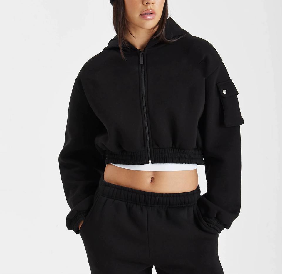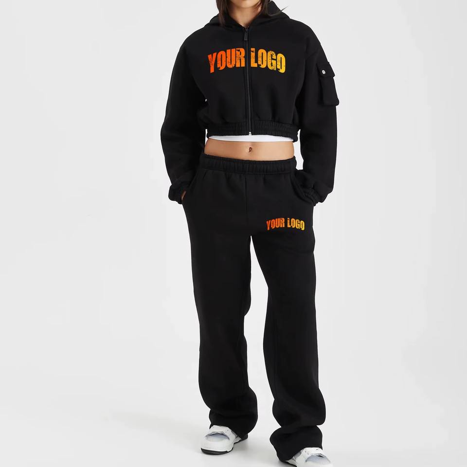 Conjunto de Sudadera y Pantalones de Chándal de Invierno para Mujer, con Apliques Personalizados, Estampado, Cremallera, Color Liso, 100% Algodón, Rosa