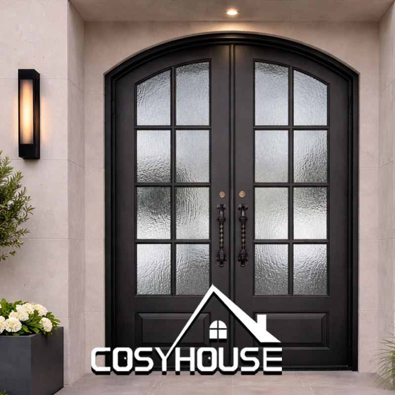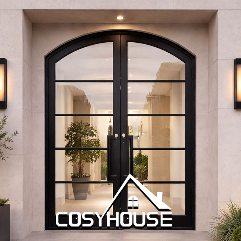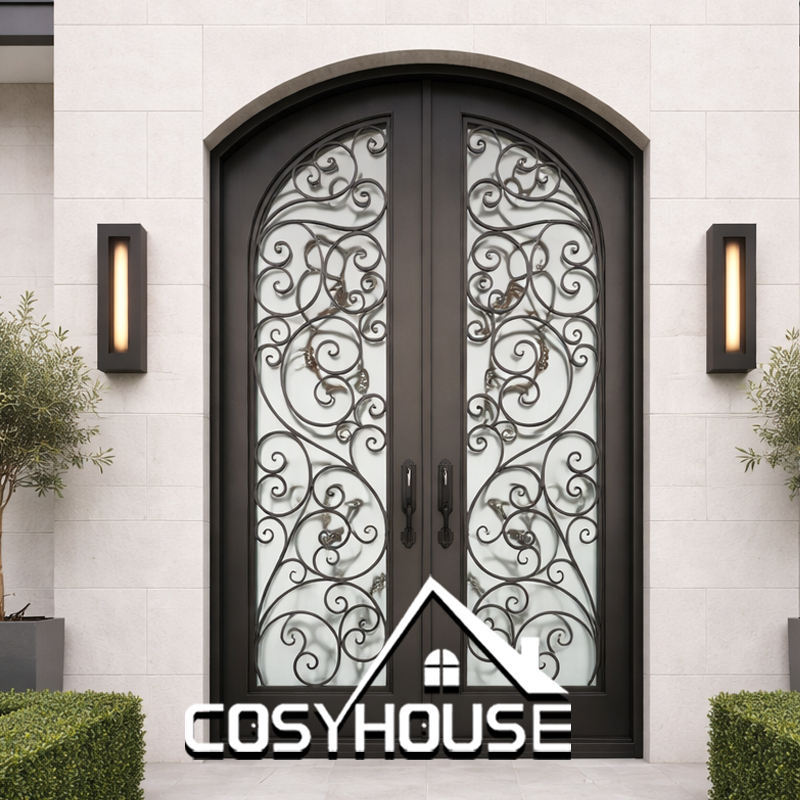 Puerta de Entrada Doble de Hierro Forjado Arqueado Personalizada para Entrada de Villa