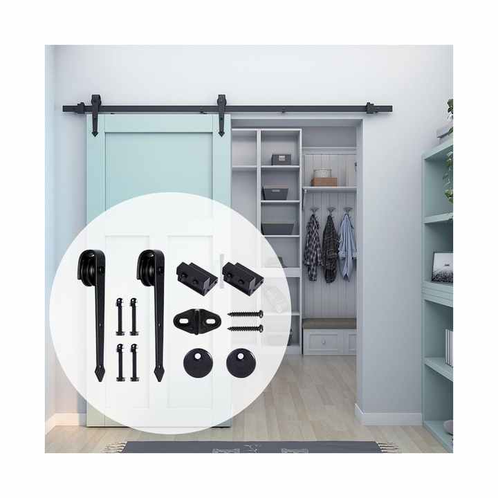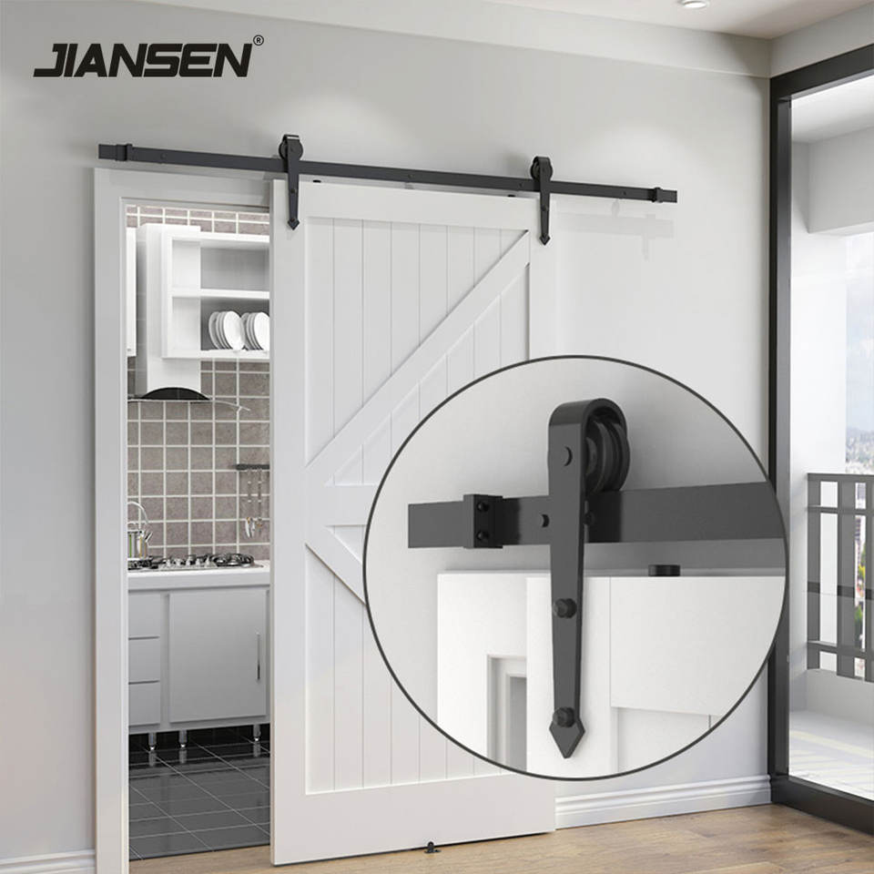 Kit de herrajes para puertas de Granero, riel deslizante con forma de flecha personalizada, tipo brazo recto, de acero al carbono