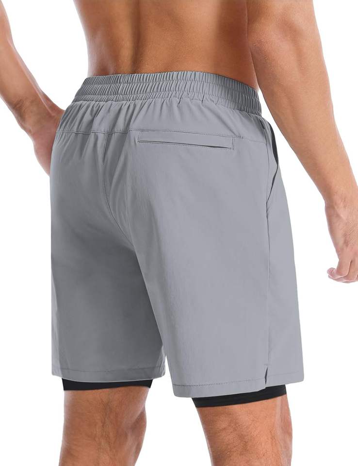 Pantalones cortos de malla atléticos personalizados Forro de compresión Bolsillo para teléfono Transpirable Secado rápido 100% Poliéster Estilo deportivo Entrenamiento Gimnasio