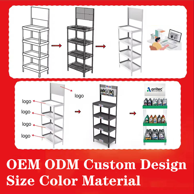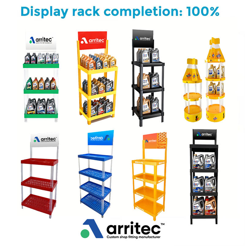 Exhibidores de Aceite de Plástico para Taller de Reparación de Automóviles, Exhibidor de Aceite Lubricante de Plástico para Piso con Logotipo