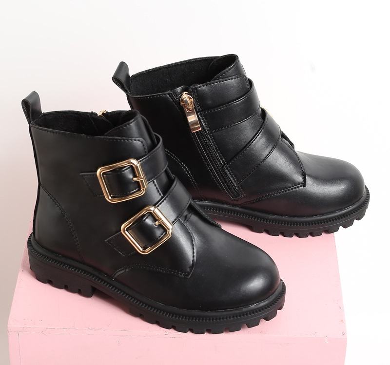 Botas de Tobillo Planas de Cuero Personalizadas para Niños, Otoño/Invierno