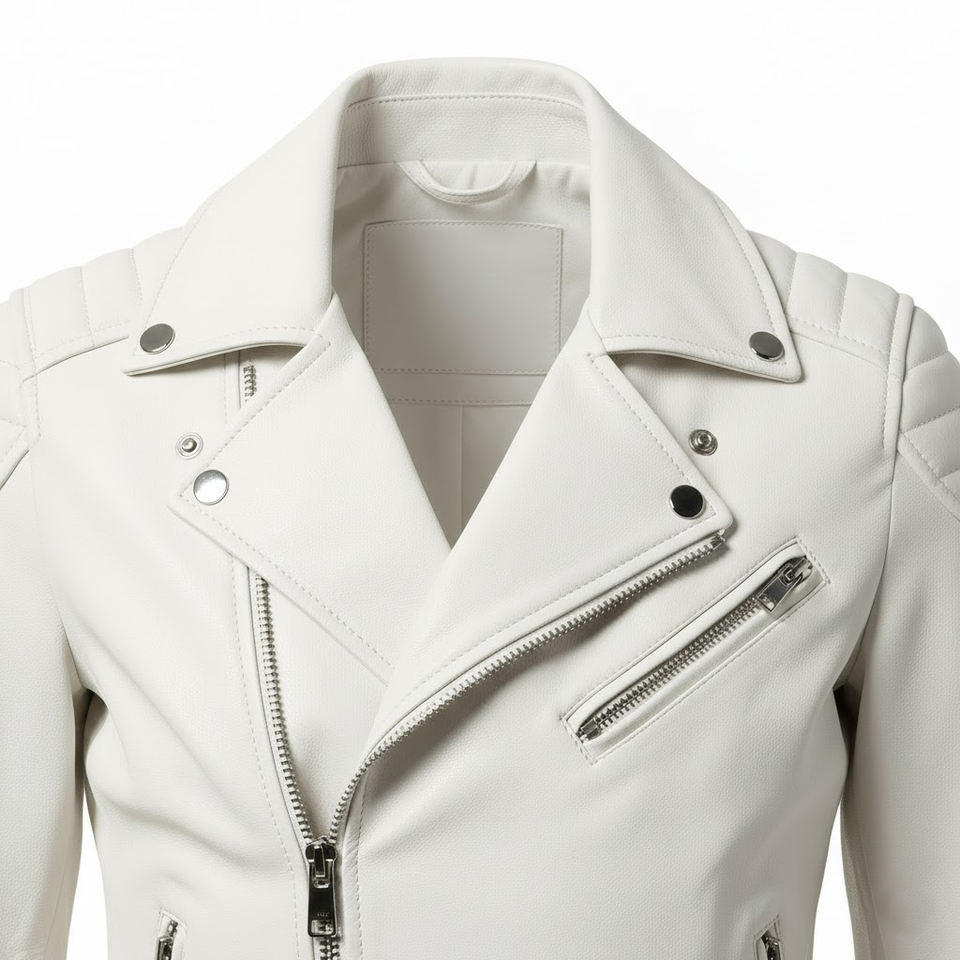 Chaqueta de Cuero Genuino para Mujer, Estilo Motociclista, de Alta Calidad, Premium, de Lujo, Color Blanco, Superventas de Otoño-Invierno