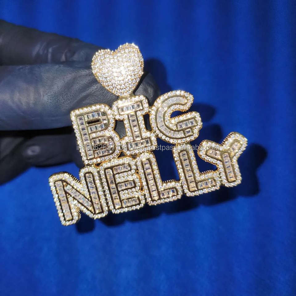 Personalizado BIG NELLY Iced Out corazón colgante personalizado Bling moissaniteDiamond letras colgante, lujo Hip Hop joyería regalo