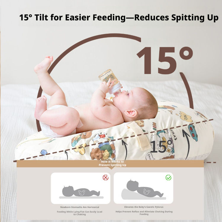 Almohada Inclinada para Bebé Personalizada, Tejida con Patrón de Animales, Relleno de Algodón Perla Antibacteriano, Soporte para Dormir y Lactancia de Recién Nacidos