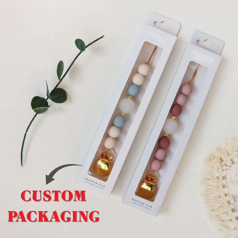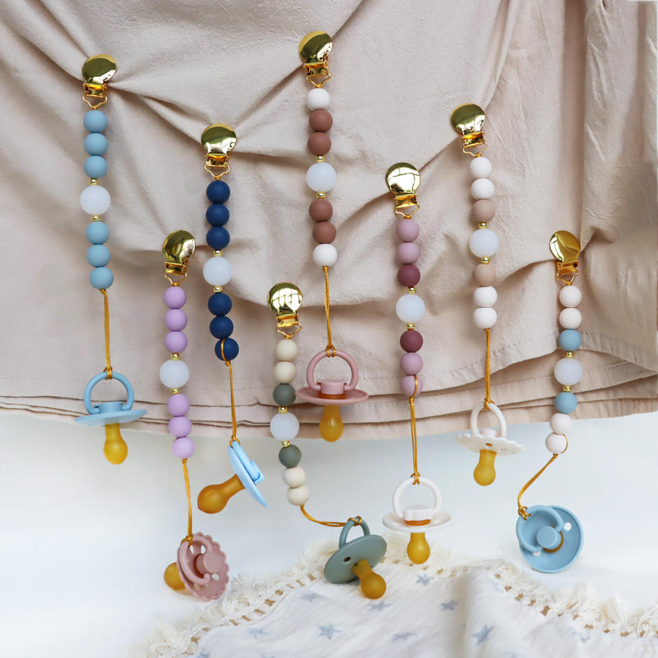 Cuentas de silicona de grado alimenticio a prueba de dientes de bebé personalizadas Clip de acero dorado y plateado Clip de chupete de bebé universal sin BPA