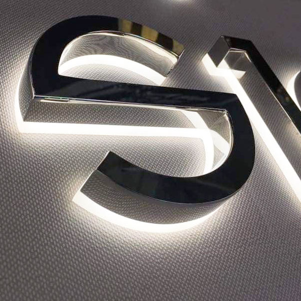 Letrero de letras de canal de acero inoxidable LED retroiluminado personalizado, fuente de luz de neón, letreros electrónicos, logotipo de escaparate, publicidad de coche DC