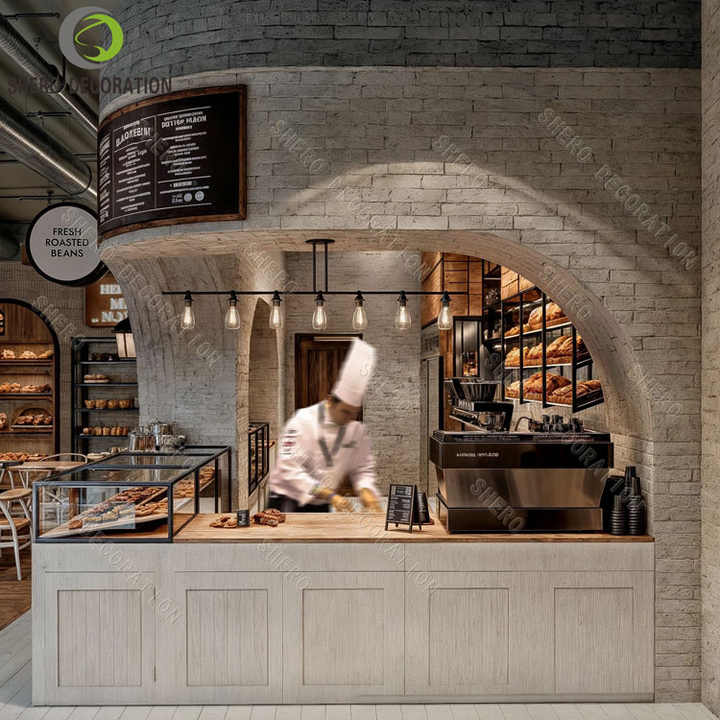 Muebles de panadería personalizados, diseño de vitrina para exhibir pan, vitrina moderna para exhibir postres y pasteles para exhibición en panadería.