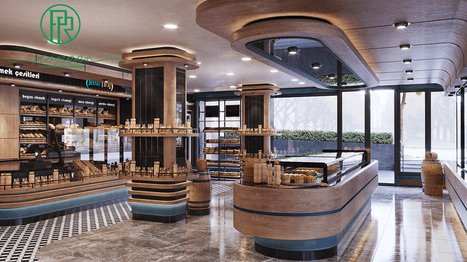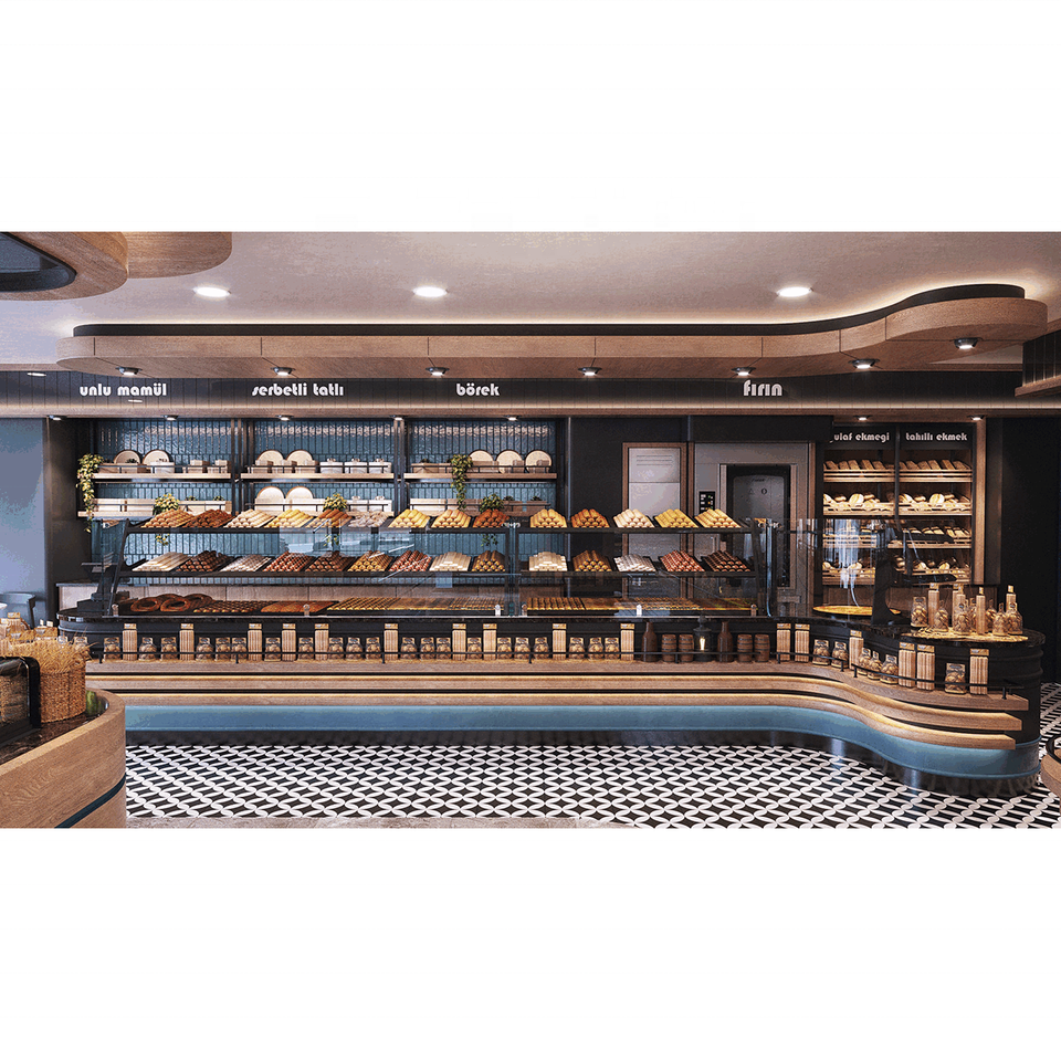 Decoración Interior personalizada para tienda de panadería, estante de exhibición de pan, restaurante, Bar, cafetería, con diseño de muebles de asientos