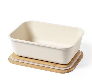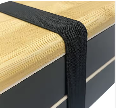 Fiambrera Bento de fibra de bambú personalizada apta para microondas, con tapa de madera, cuchara y tenedor, ideal para la preparación de comidas