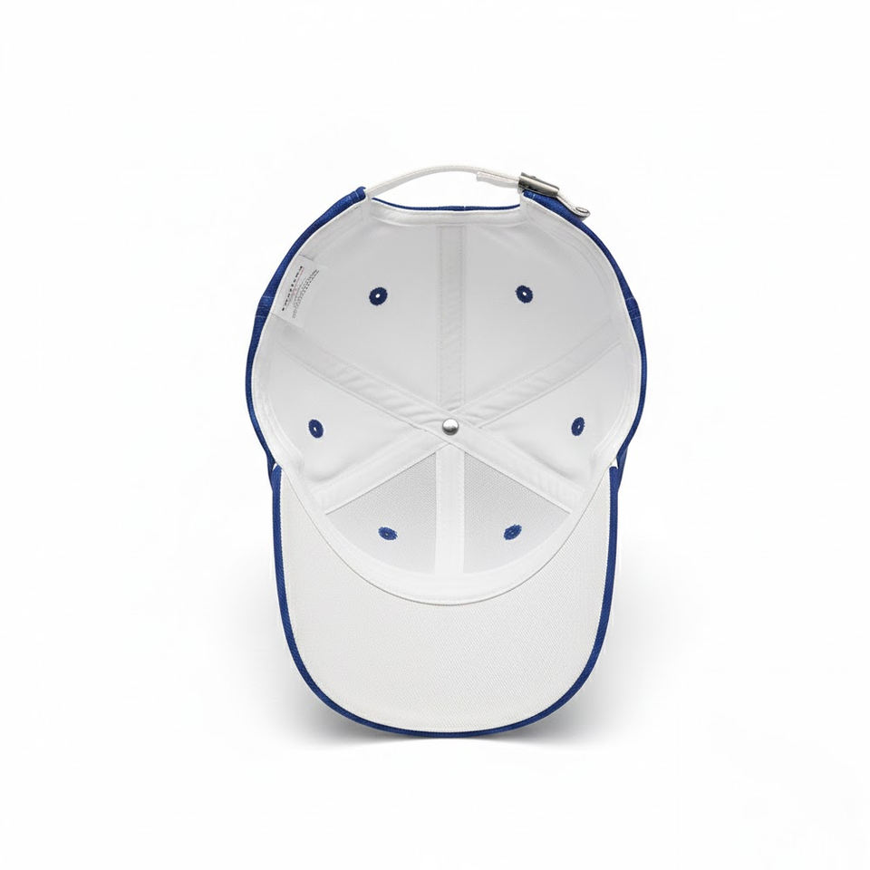 Gorra de Béisbol con Logotipo Personalizado, Blanca y Azul, Tela Personalizada Transpirable y Cómoda, Gorra de Béisbol de 6 Paneles, Diseño Triangular Moderno, Deportiva, Unisex