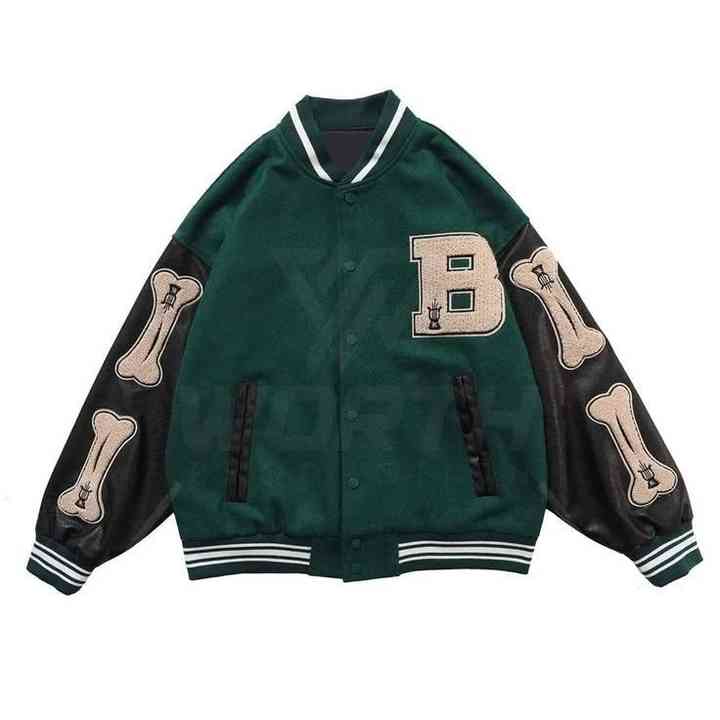 Chaqueta de béisbol personalizada Lana Mangas de cuero Desgastado Chenille Bordado Letterman Coat