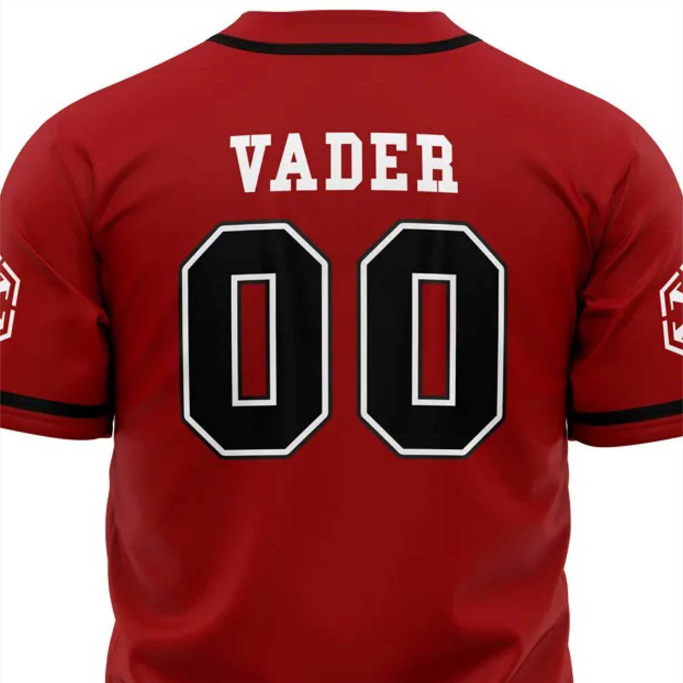 Camiseta de béisbol personalizada, uniforme de equipo abotonado rojo y negro, Camiseta deportiva de poliéster transpirable con logotipo personalizado y cuello en V de secado rápido