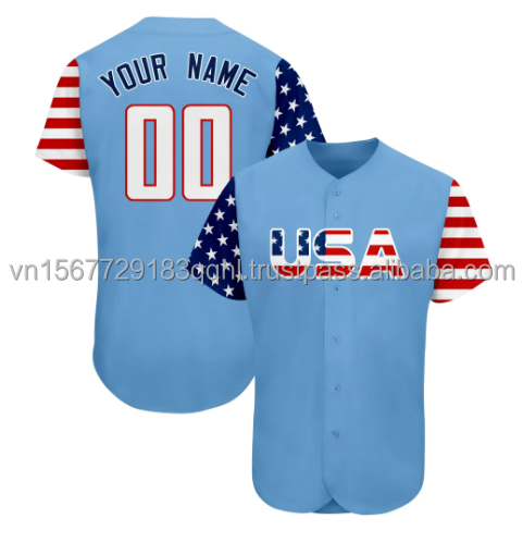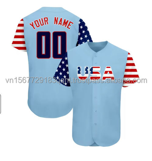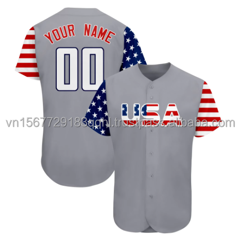 Camiseta de Béisbol Personalizada con Sublimación, Nombre del Equipo, Número, Bandera de EE. UU., Camiseta de Béisbol, Camiseta de Softbol para Entrenamiento Deportivo