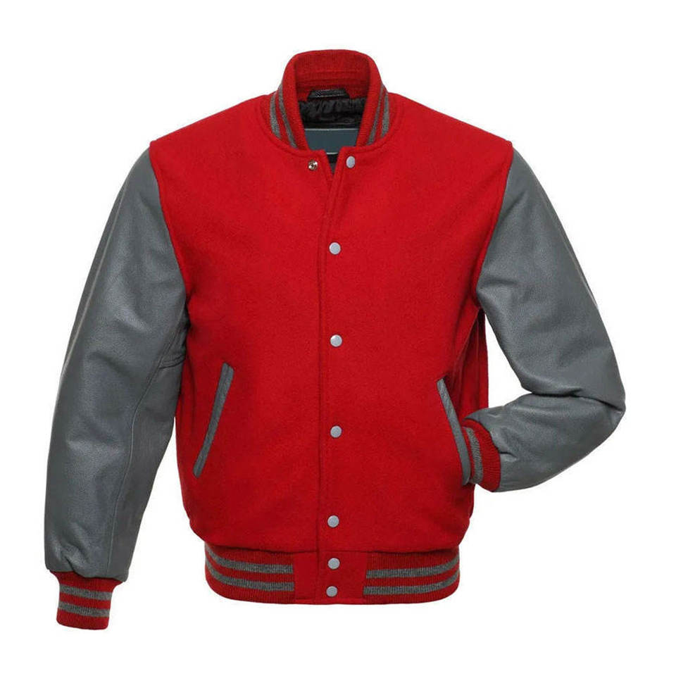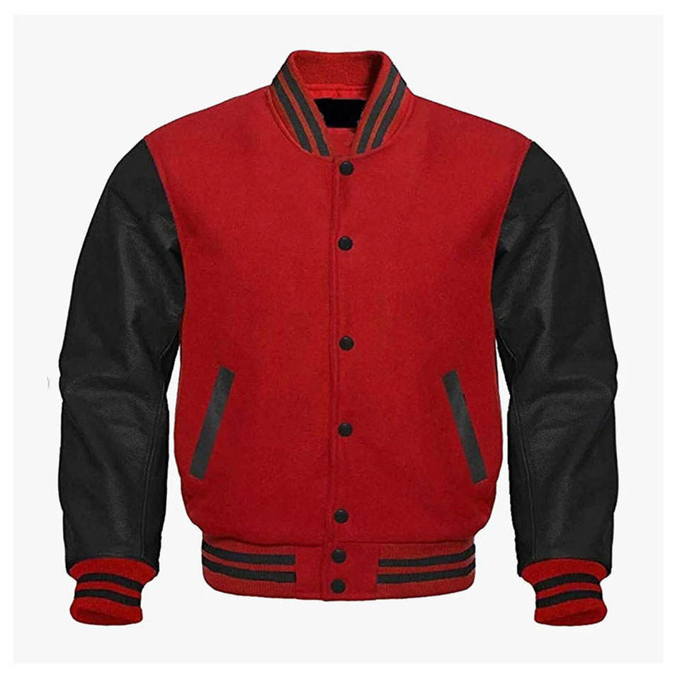 Chaqueta Universitaria de Béisbol Personalizada para Hombre, Cuerpo de Lana, Mangas de Cuero Genuino, Chaqueta Bomber Universitaria con Logotipo Bordado Americano