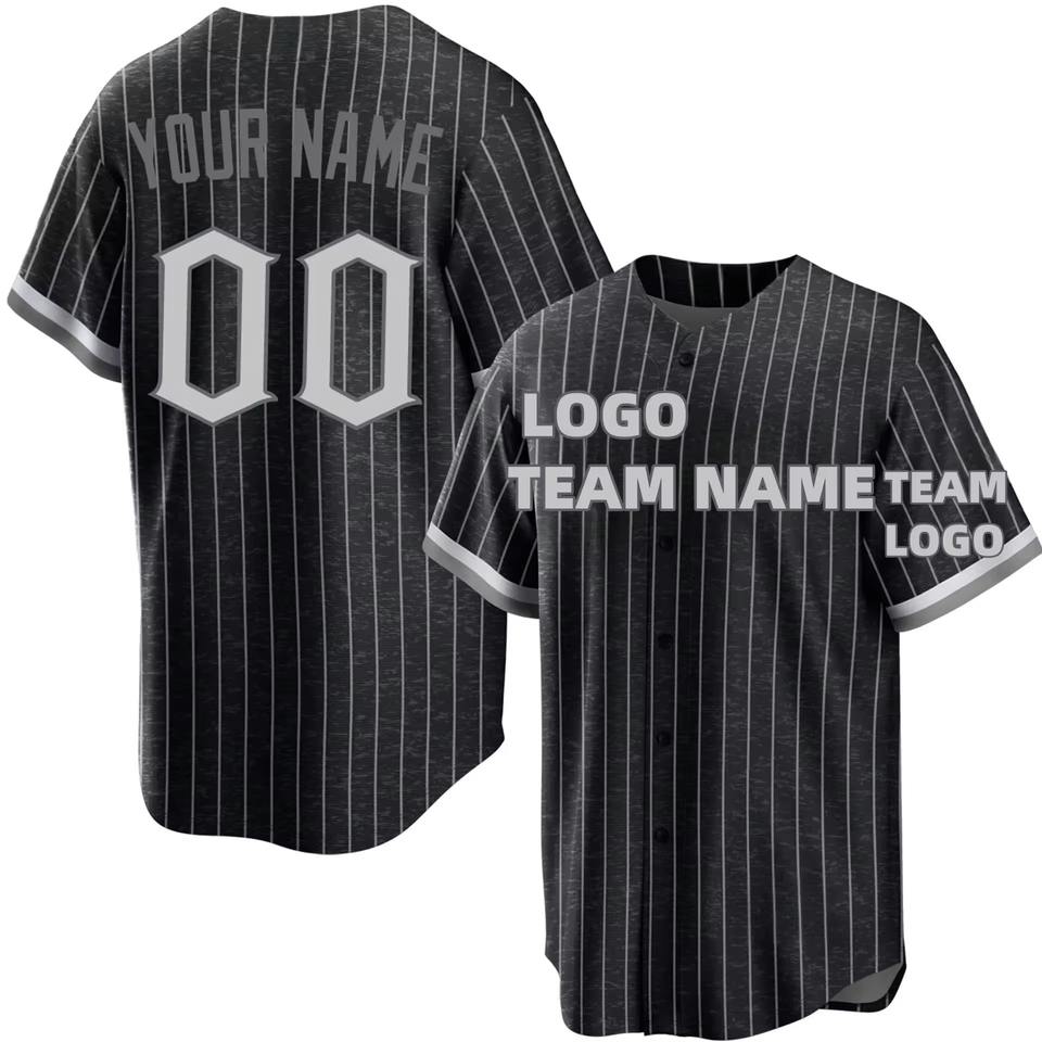 Conjunto de Pantalones y Camiseta de Béisbol y Sóftbol Personalizados, Negros, Unisex, Sublimados, Transpirables, Talla Grande, Estilo Retro, 100% Poliéster, Secado Rápido