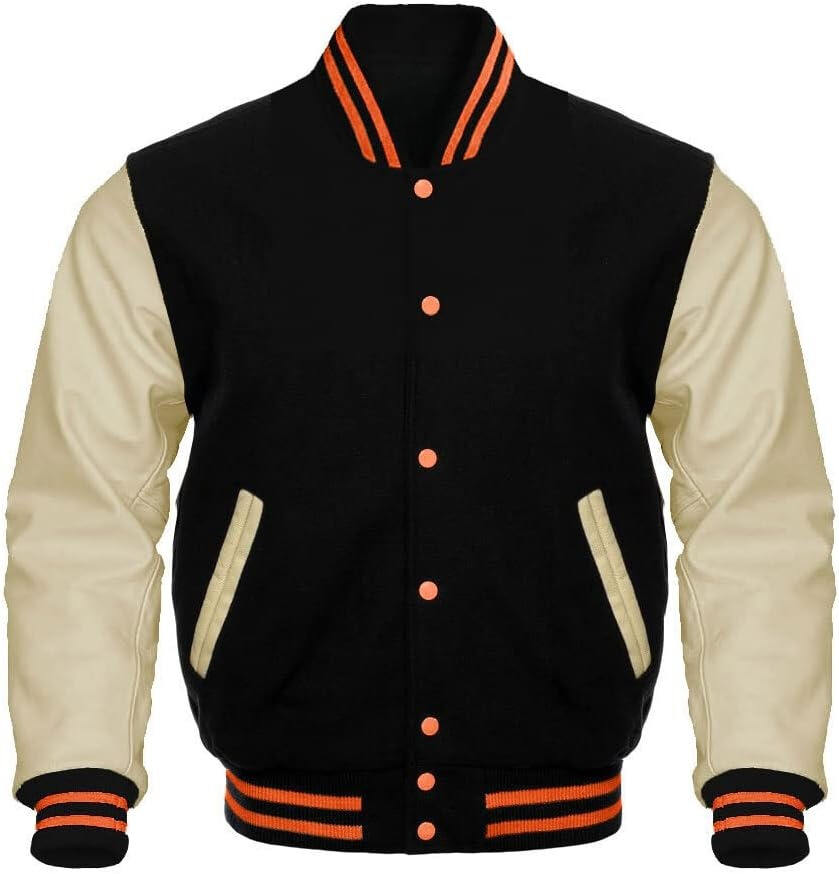 Chaqueta de lana de béisbol personalizada con mangas de cuero genuino Varsity Letterman Jacket