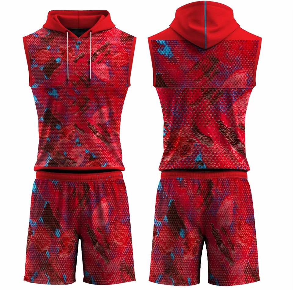 Uniforme de Baloncesto Personalizado Rojo y Negro con Diseño Sublimado, Conjunto de Sudadera sin Mangas, Jersey y Pantalones Cortos OEM