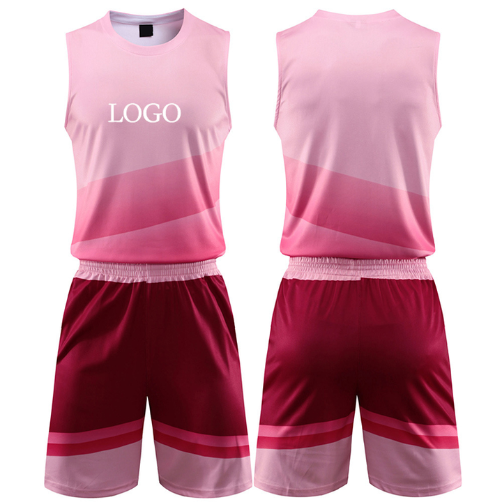 Conjunto de Uniforme de Baloncesto Personalizado, Jersey sin Mangas con Degradado Rosa y Marrón y Pantalones Cortos, Ropa Deportiva Transpirable de Secado Rápido, Atuendo de Equipo