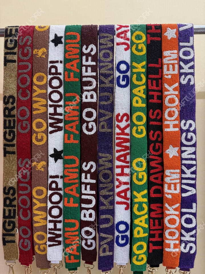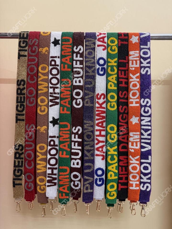 Correa de Bolso Personalizada con Cuentas, Correa de Hombro Ancha Bordada, Correa Cruzada Ajustable con Cierres de Mosquetón para Bolsos y Carteras