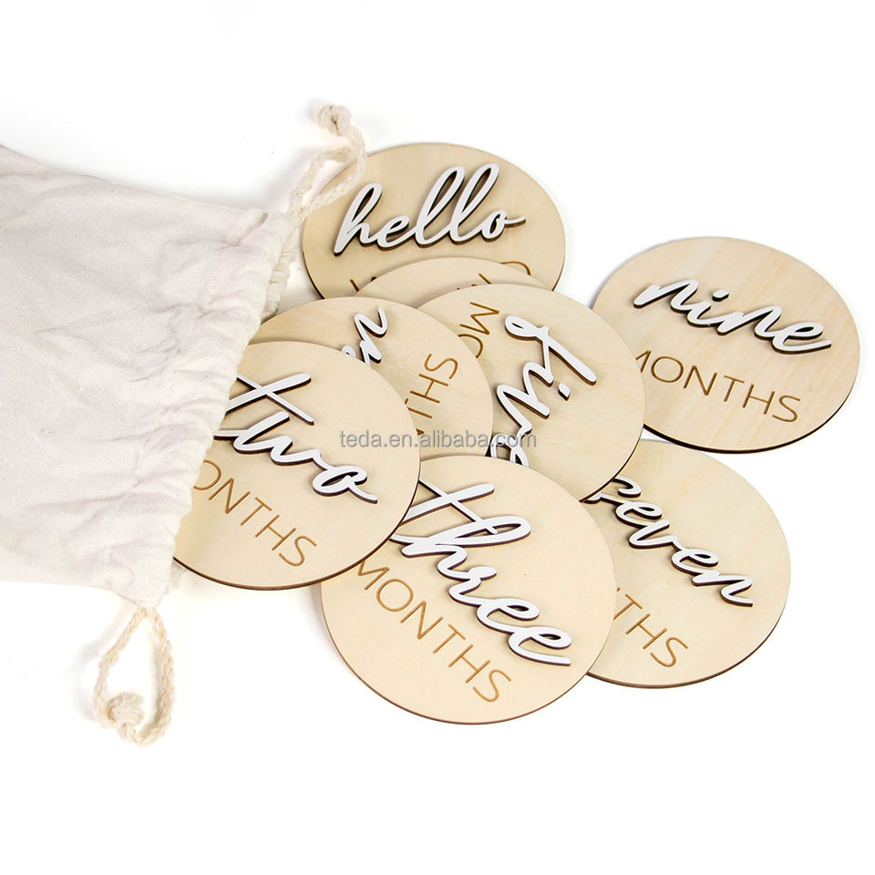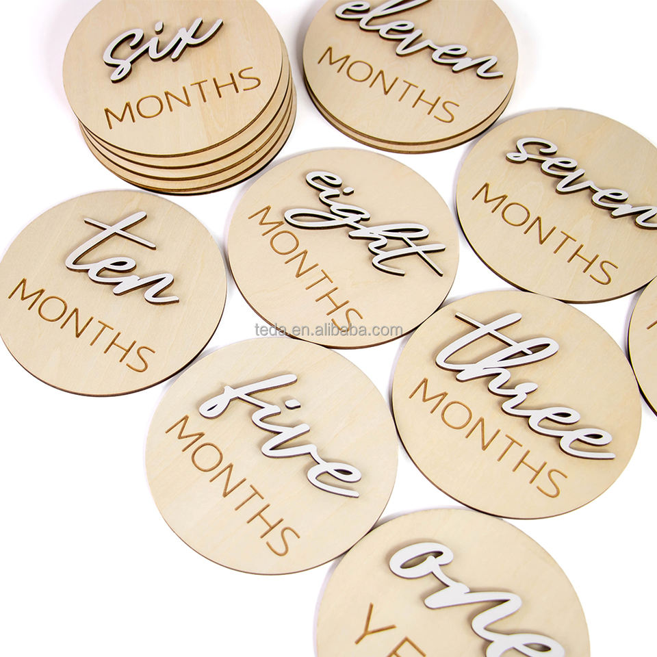 Tarjetas de hitos mensuales para bebés hermosos personalizadas para conmemorar el crecimiento, impresión grabada con láser, tarjetas de hitos de madera para