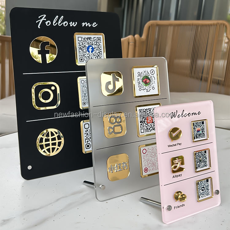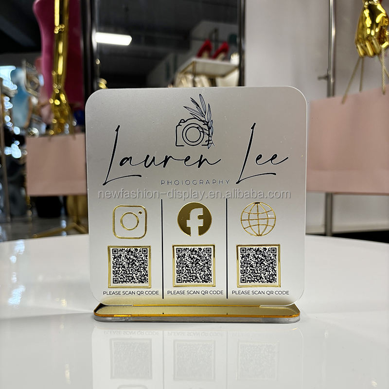 Pantalla de mesa de salón de belleza personalizada Escanear para pagar Venmo Paypal Cash Blanco Acrílico personalizado Qr Code Stand Sign