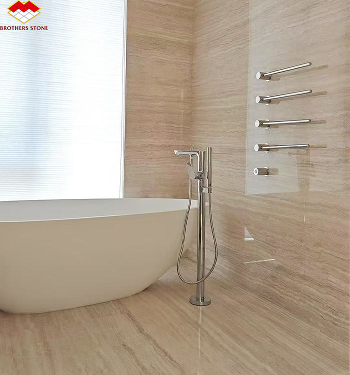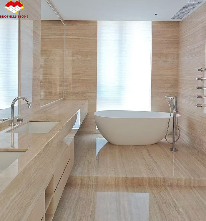 Losas de mármol travertino beige personalizadas travertino natural de Italia Roma para panel de pared de baño interior diseño de piso y fregadero