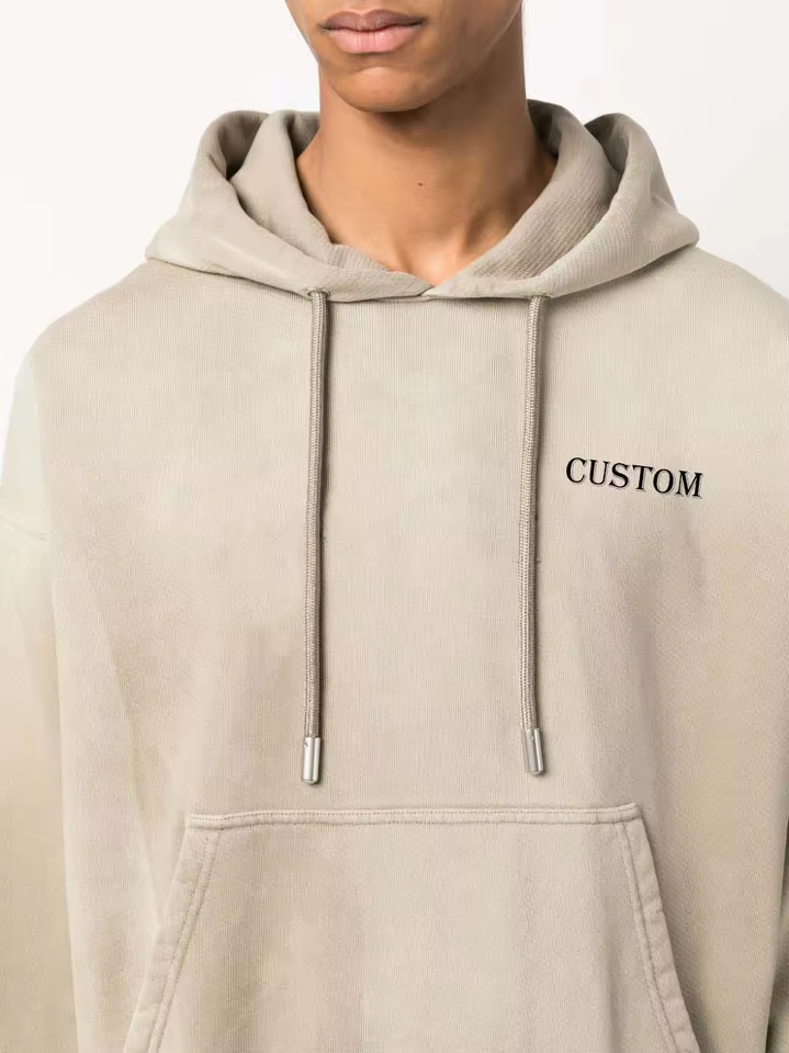 Sudadera con Capucha Personalizada Beige Unisex con Cordón, Logotipo Grabado, Hombros Caídos, Oversize, Forro Polar Grueso para Invierno, para Hombre y Mujer