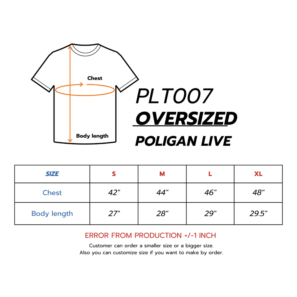 Nombre del producto:Poligan Live Camisetas de gran tamaño Unisex Algodón 100% PLT007
