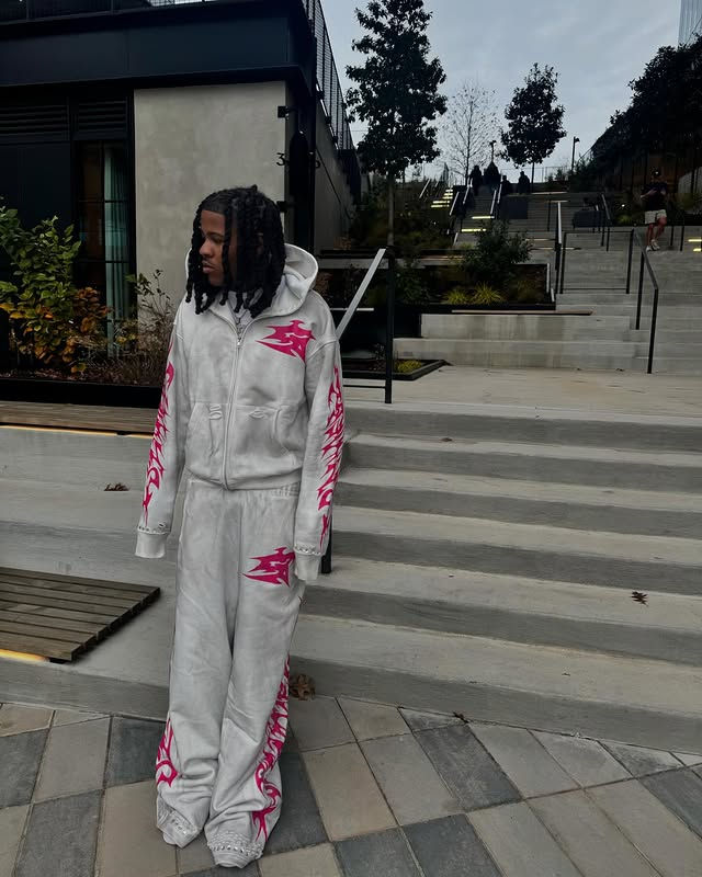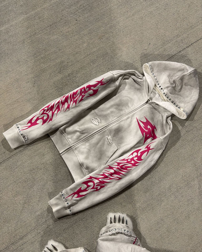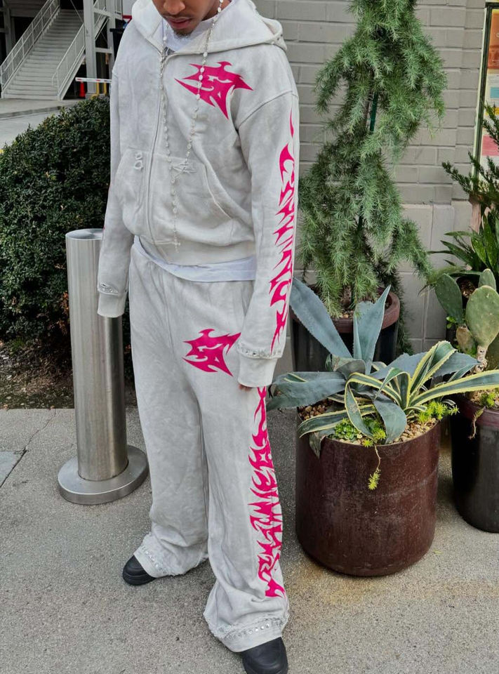 Sudadera con capucha deportiva y pantalones de chándal con lavado ácido de diamantes de imitación holgados de gran tamaño personalizados, conjunto de dos piezas, chándal para correr para hombres