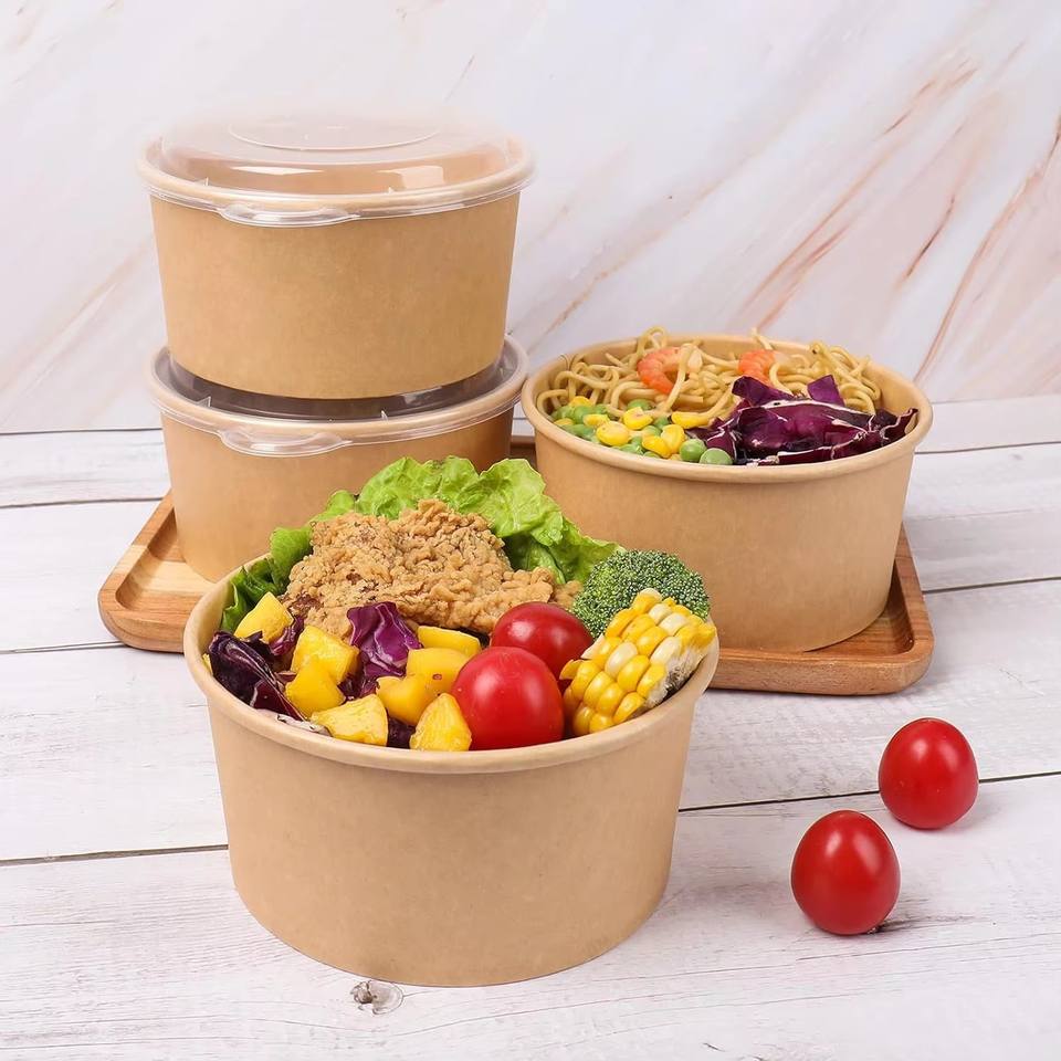 Envases de papel biodegradables personalizados para alimentos, desechables, grandes, con tapa de papel para pan, pizza, bocadillos y ensaladas.