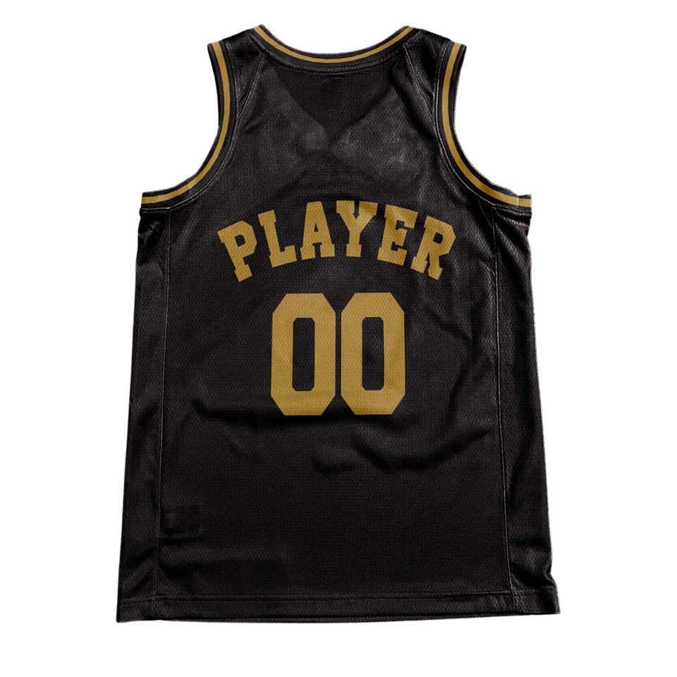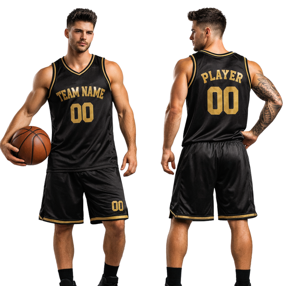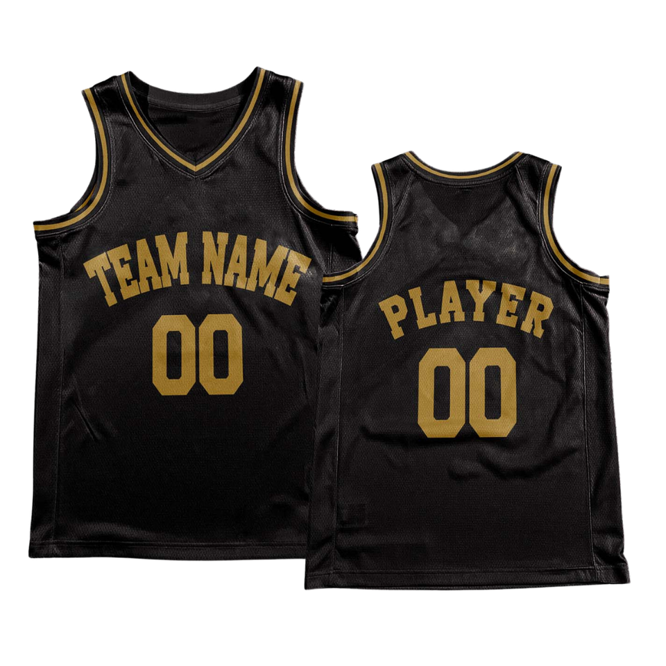 Conjunto de Uniforme de Baloncesto Retro Negro Personalizado, Jersey con Texto Dorado, Pantalones Cortos, Nombre del Equipo y Número Retro, Diseño Clásico