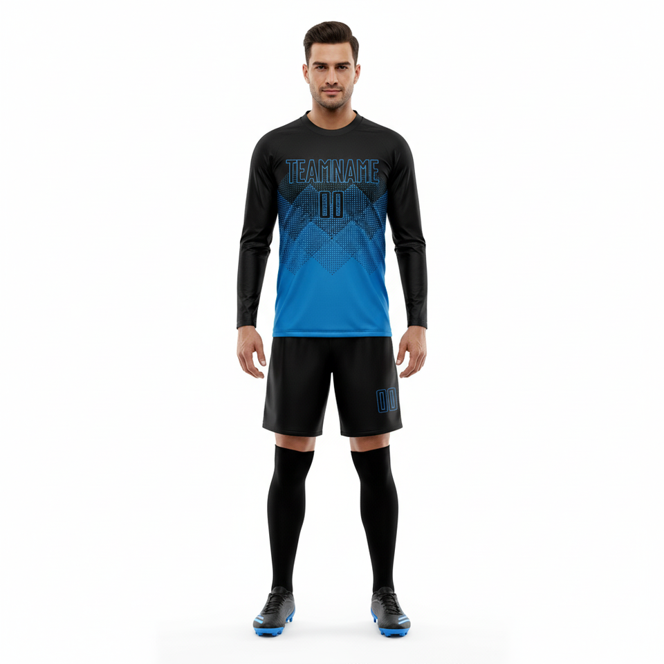Uniforme de Portero Personalizado Negro y Azul - Conjunto de Camiseta y Pantalones Cortos Transpirables y Ligeros con Acolchado para la Temporada de Otoño