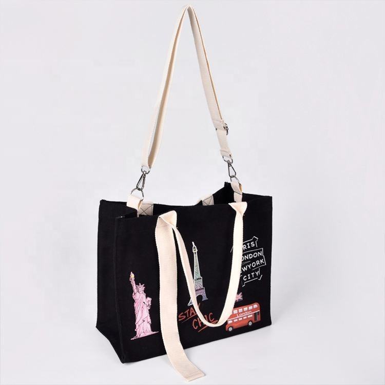 Nombre del producto:Bolso de hombro de lona negro Nuevo diseño personalizado