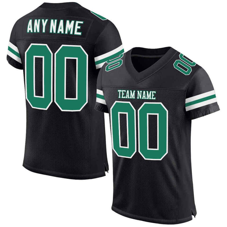 Camiseta de Fútbol Negra Personalizada con Detalles Verdes, Nombre y Número Personalizados, Cuello en V Transpirable, Uniforme de Equipo, Camiseta Deportiva de Poliéster Corta