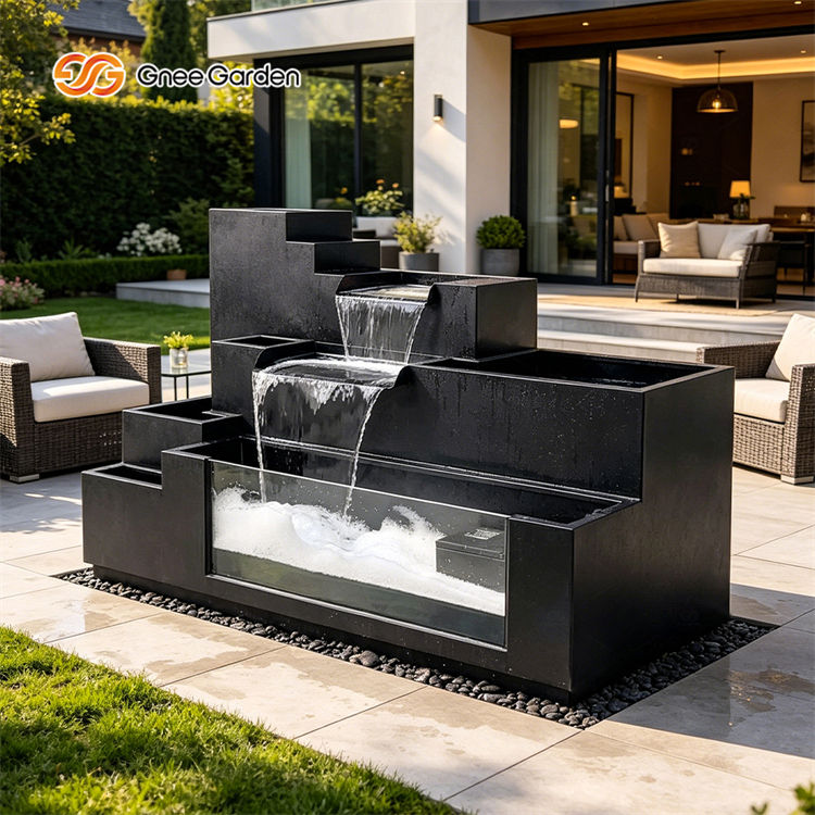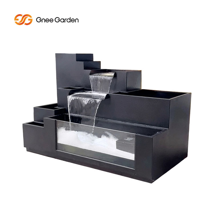 Estanque de Peces Moderno Personalizado de Acero Galvanizado Negro, Rectangular, de Múltiples Niveles, Resistente al Agua y a la Intemperie, para Jardín o Patio Trasero