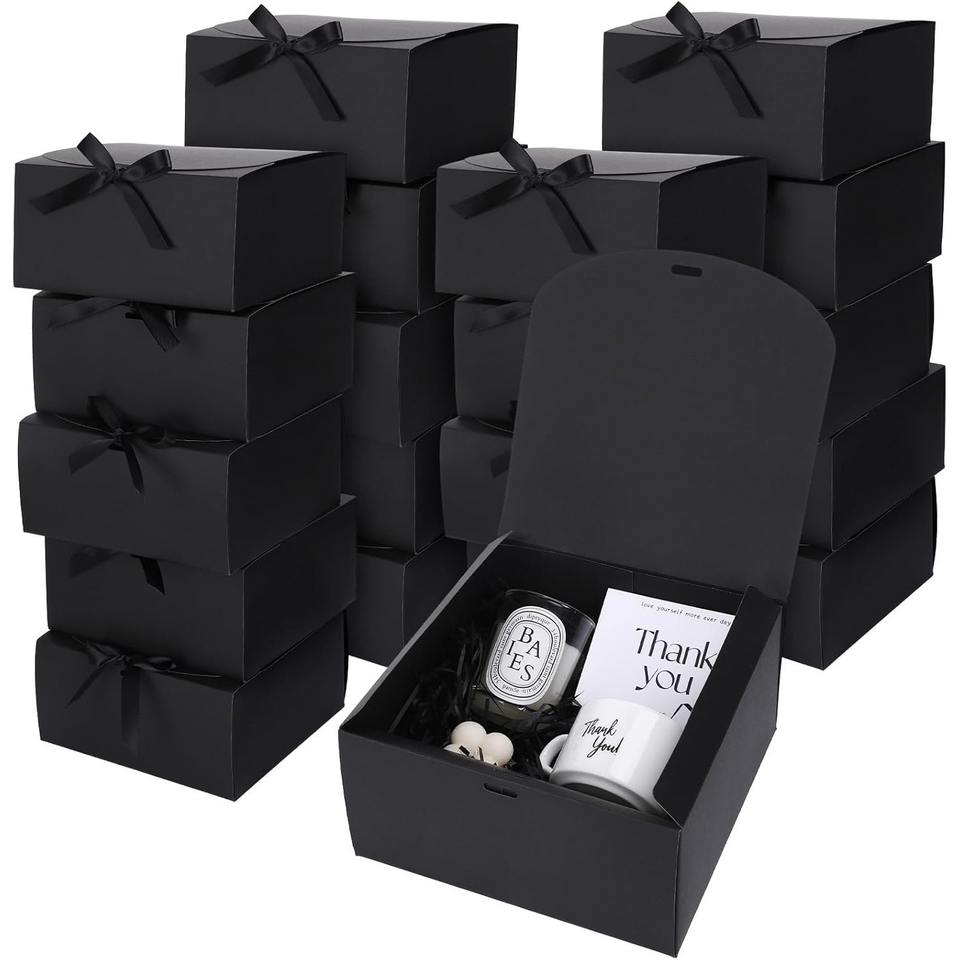 Cajas de Regalo Negras Personalizadas con Cinta, Cajas de Empaque de Lujo con Logotipo Personalizado, Regalos al por Mayor, Empaque de Regalo de Papel Impreso OEM/ODM