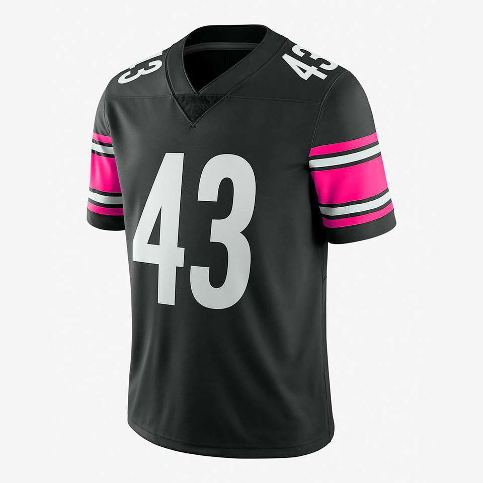 Uniforme de Fútbol Americano Personalizado con Rayas Negras y Verdes, Número del Equipo Impreso, Cuello en V, Manga Corta, Transpirable, Protección UV