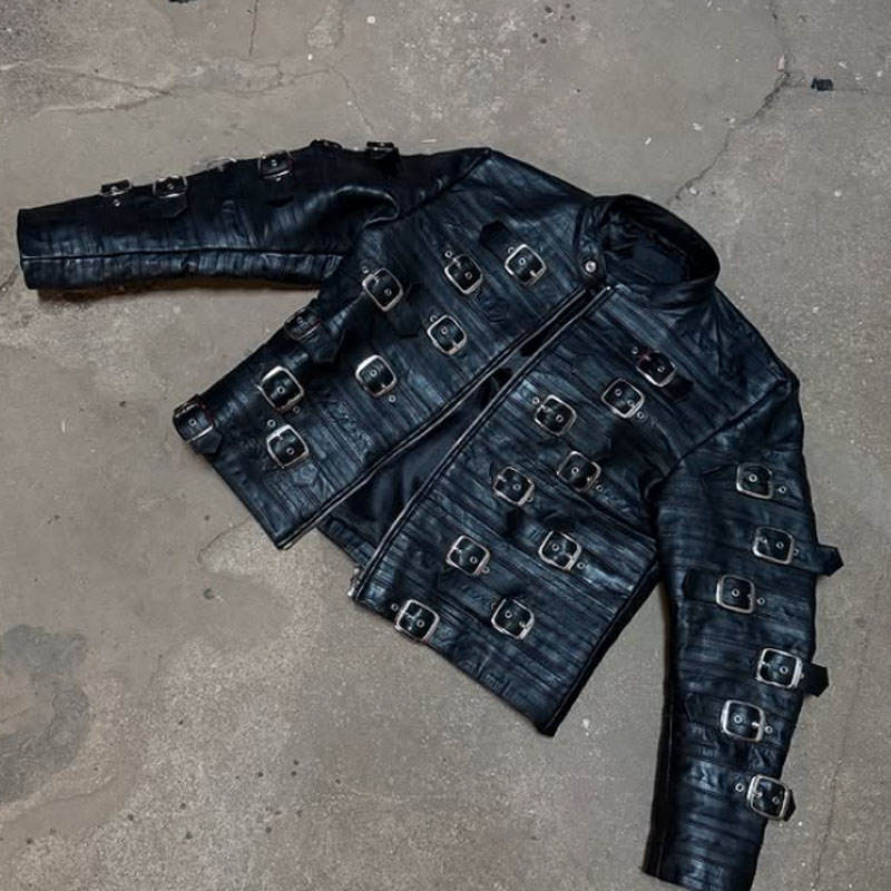 Pantalones Cortos Casuales de Verano de Pierna Ancha con Cierre de Botones y Accesorios de Hebilla, de Cuero Negro a Rayas, de Cintura Alta, Personalizados