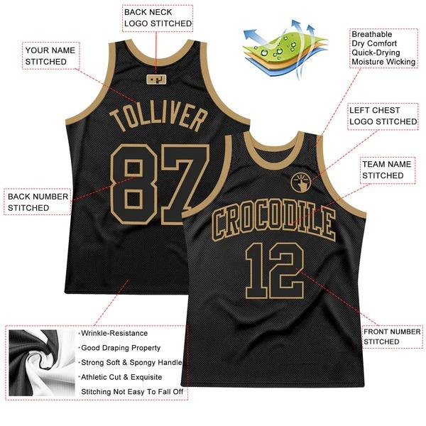 Camiseta de Baloncesto Retro Personalizada Negra con Detalles en Oro Viejo, Uniforme de Equipo Sublimado, Camiseta de Entrenamiento Retro